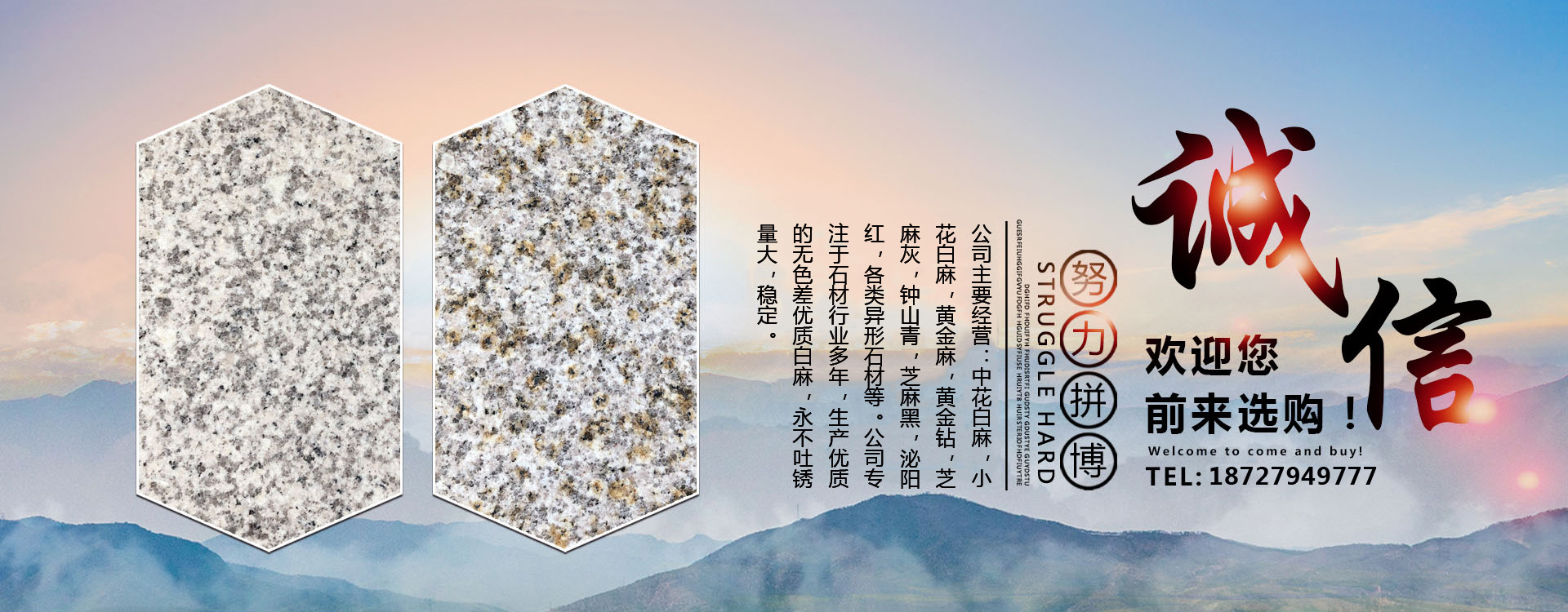 隨州市鑫順石材有限公司位于湖北省隨州市隨縣萬和鎮桐柏山。是一家集礦山開采、石材加工、異形制作、產品銷售為一體的大型綜合型石材企業!本公司主要經營:中花白麻,小花白麻,黃金麻,黃金鉆,芝麻灰,鐘山青,芝麻黑,泌陽紅,各類異形石材。生產的石材規格齊全、做工精細,被廣泛用于外墻干掛、廣場地鋪、市政園林、建筑工程、環境景觀異形石材等各類建筑墻體、地面的裝飾裝修。公司專注于石材行業多年,生產優質的無色差優質白麻,永不吐銹量大,穩定,主攻高鐵站,地鐵站,機場等大型市政房產??沙薪痈鞣N異形加工,速度快,質量無憂。我們秉承“誠信經營,服務為本”的經營理念,竭誠為廣大客戶提供優質的產品和滿意服務,期待與您的合作,竭誠歡迎國內外新老客戶前來訂購洽談!